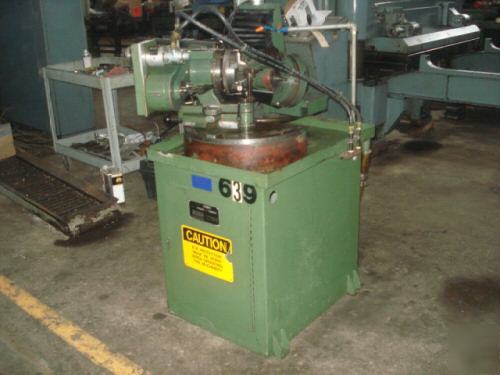 For Conventional, Thinned Point, Split Pint, Lip Corrected, Web Thinned And Flat Bottom Drills. Tap Sharpening. Ream Sharpening. Endmill Sharpening. Spin And Index Grinding. Motor Driven with .5 HP, 115/208-230 Volt Single Phase Motor. 6.5" 6-Jaw Chuck. Dual Cam Workhead For Grinding Both Odd And Even Numbered Flutes. Motorized Workhead. Hand Knob For Workhead Indexing And Set-Up. Abrasive Wheel Flute Finger With Dovetail Cross Feed And Micrometer Vertical Adjustment. Direct Angle Setting Device. Rocker Arm Fixture For Flute Indexing. Micrometer Infeed. Miscellaneous Cams. Cabinet Base. SPECIFICATIONS: