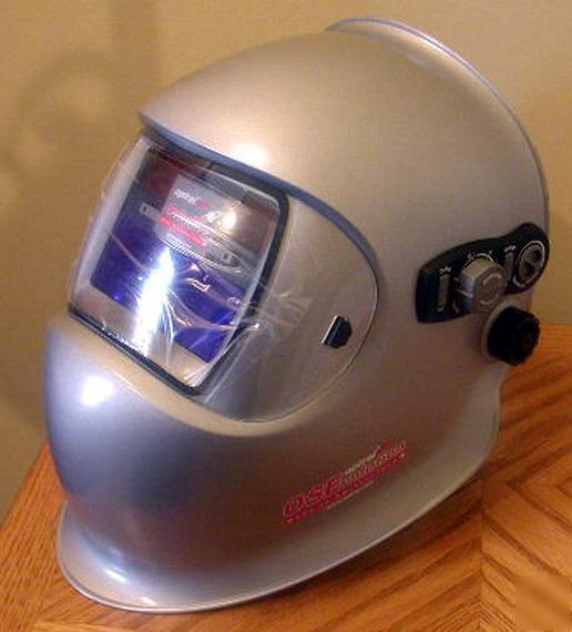 BRAND NEW K602 SILVER OPTREL SATELLITE AUTO CHANGE ELECTRONIC WELDING HELMET. . ALL CONTROLS ON THE OUTSIDE, EASY TO USE. TWO DIFFERENT SETTING RANGES 4/9 AND 9/13. GRINDING MOOD. COMES WITH 2 EXTRA OUTSIDE PROTECTION LENSES. BRAND NEW.