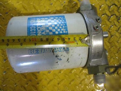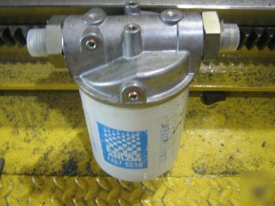 Qty 1 - hydraulic filter head. These hydraulic return filter units were used/surplus stock that we aquired for a run of prototype machines that we ended up using a different brand filter head on. They have #16 or bigger sae female oring ports but included are two adapters that reduce it down to #12 male 37 degree JIC. These filter heads have multiple ports for test fittings and two tapped 5/16 threaded holes, these units are aluminum and have no visual cosmetic